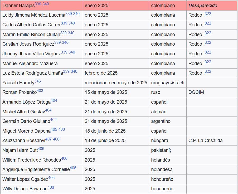 Detalle de la lista de presos políticos inserta en Wikipedia