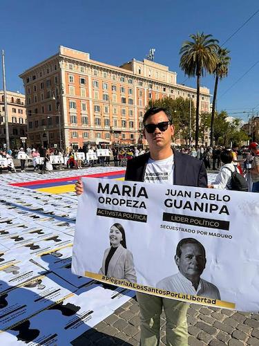La delegación junto con miles de fieles católicos de todas partes del mundo que acompañan los actos de canonización de José Gregorio y Carmen Rendiles alzan la voz por los más de 800 presos políticos que mantiene el régimen de Nicolás Maduro en sus centros de encarcelamiento y tortura.