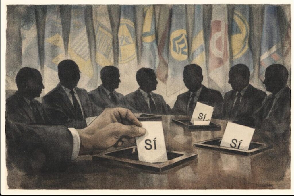 No son Estados pequeños construyendo posiciones comunes tras un debate genuino, sino una unidad de voto previsible, impermeable al examen de rupturas democráticas o violaciones institucionales. El consenso funciona como coartada colectiva: nadie asume la decisión en solitario, pero todos la ejecutan. No hay deliberación visible. Hay disciplina.